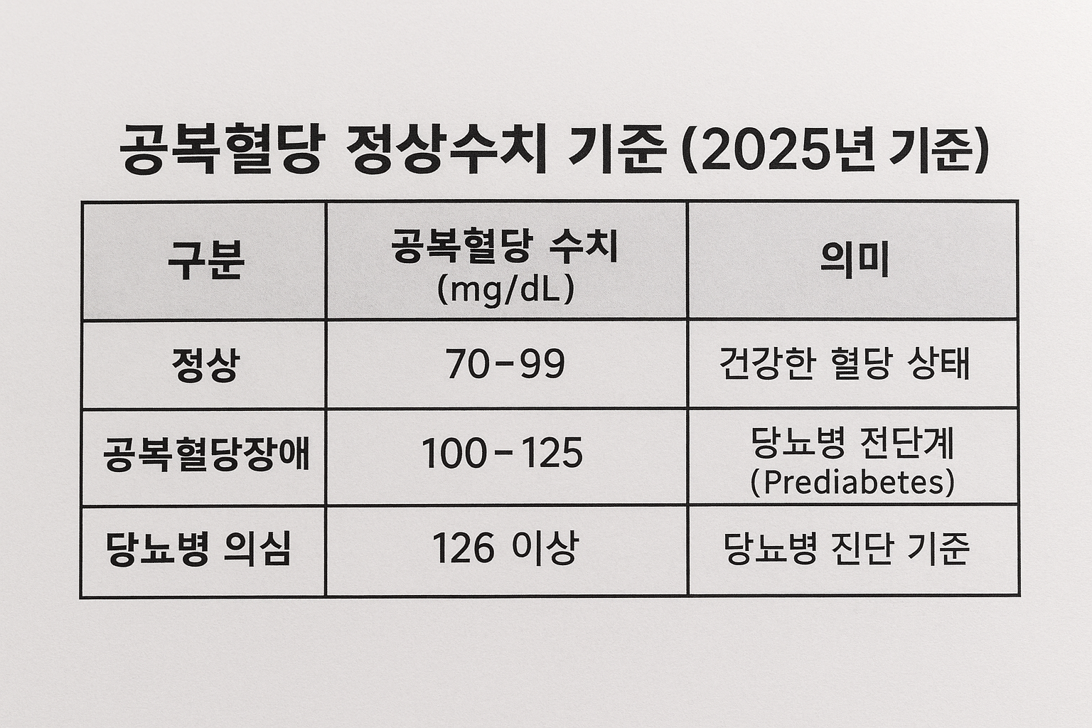 ✅ 공복혈당 정상수치 기준 (2025년 기준)